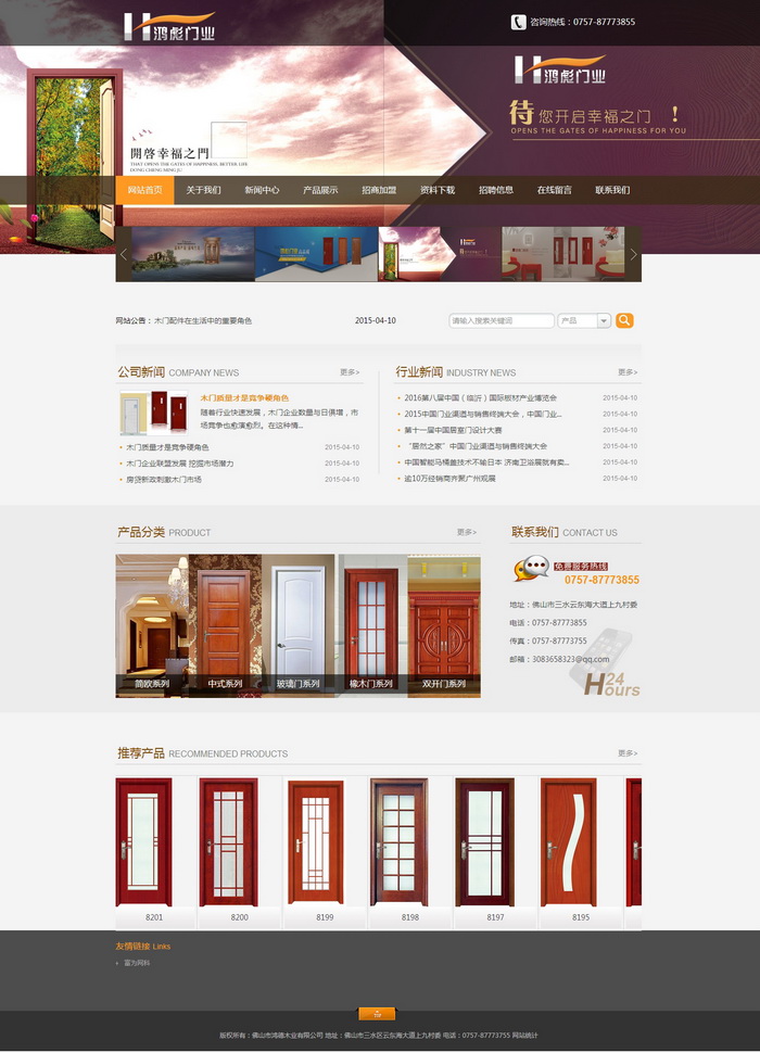 簽約佛山市鴻德木業(yè)有限公司網(wǎng)站建設(shè)佛山市鴻德木業(yè)有限公司旗下品牌“鴻彪”是一家集設(shè)計、開發(fā)、生產(chǎn)、銷售為一體的門業(yè)品牌企業(yè)。公司主要生產(chǎn)原木門、實木烤漆門、PVC免漆木門,產(chǎn)品具有設(shè)計時尚、款式新穎、安裝方便、綠色環(huán)保等特點。自產(chǎn)品投放市場以來深受廣大消費者喜愛,已成為全國各地經(jīng)銷商、地產(chǎn)開發(fā)商、裝飾公司、出……2015-04-04
